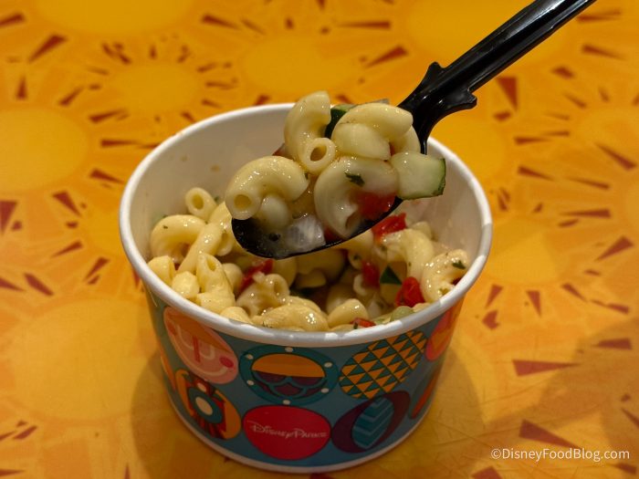 This ended up being the right choice for us to pair with the pizza roll because the pasta salad was almost tangy, or gave a pickled flavor. The pasta noodles are mixed with chopped veggies and didn’t have a lot of watery, soupy mixture to it. Overall, it kept things pretty light as a side, and we could see that being the most appealing option of the two side choices since it has quite a bit of flavor. Although, at the end of the day, it didn’t blow us away with how it tastes.