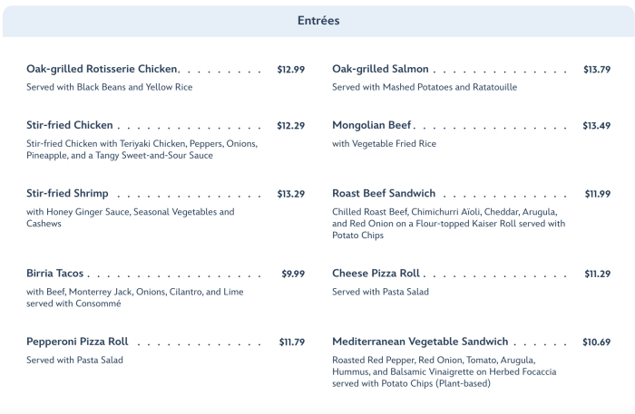 There’s a LOT of options to cover here, and this is just for Lunch! We’ll start off with the entree options…