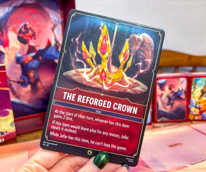 But really, ALL the Lorcana cards are STUNNING. That’s one of the reasons why I love this game so much. The artwork is phenomenal and depicts several of my favorite Disney characters inside magical scenarios and new storylines that I can’t help but get swept up in.