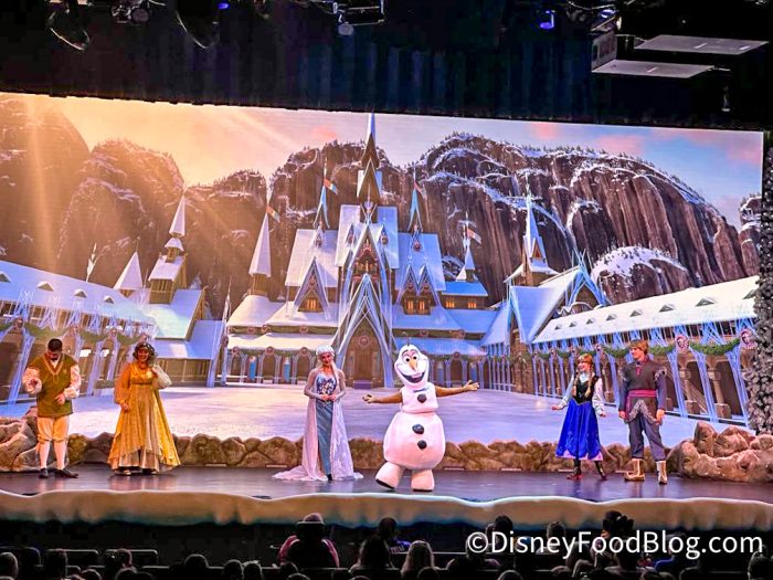 During the show, a large screen will show lyrics to Frozen‘s most popular songs so that the audience can sing along. In between the songs, you’ll get to hear from the storytellers (who have some really funny jokes for kids and adults alike), as well as spot a few of your favorite characters. Elsa even makes it snow inside the theater!