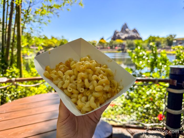 The new menu here is focused almost entirely on macaroni & cheese! Previously, Eight Spoon Cafe was the mac & cheese hub for the park, but now you’ll find the cheesy pasta over here.