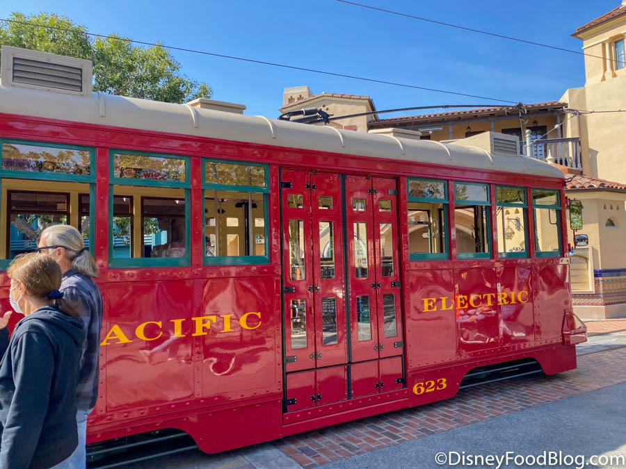 While the car — styled after the Los Angeles Pacific Electric trolley cars of the early-to-mid 1900s — still sits at the front of the park, it is out of service, so don’t expect rides up and down Buena Vista Street, Hollywood Boulevard, and Sunset Boulevard.