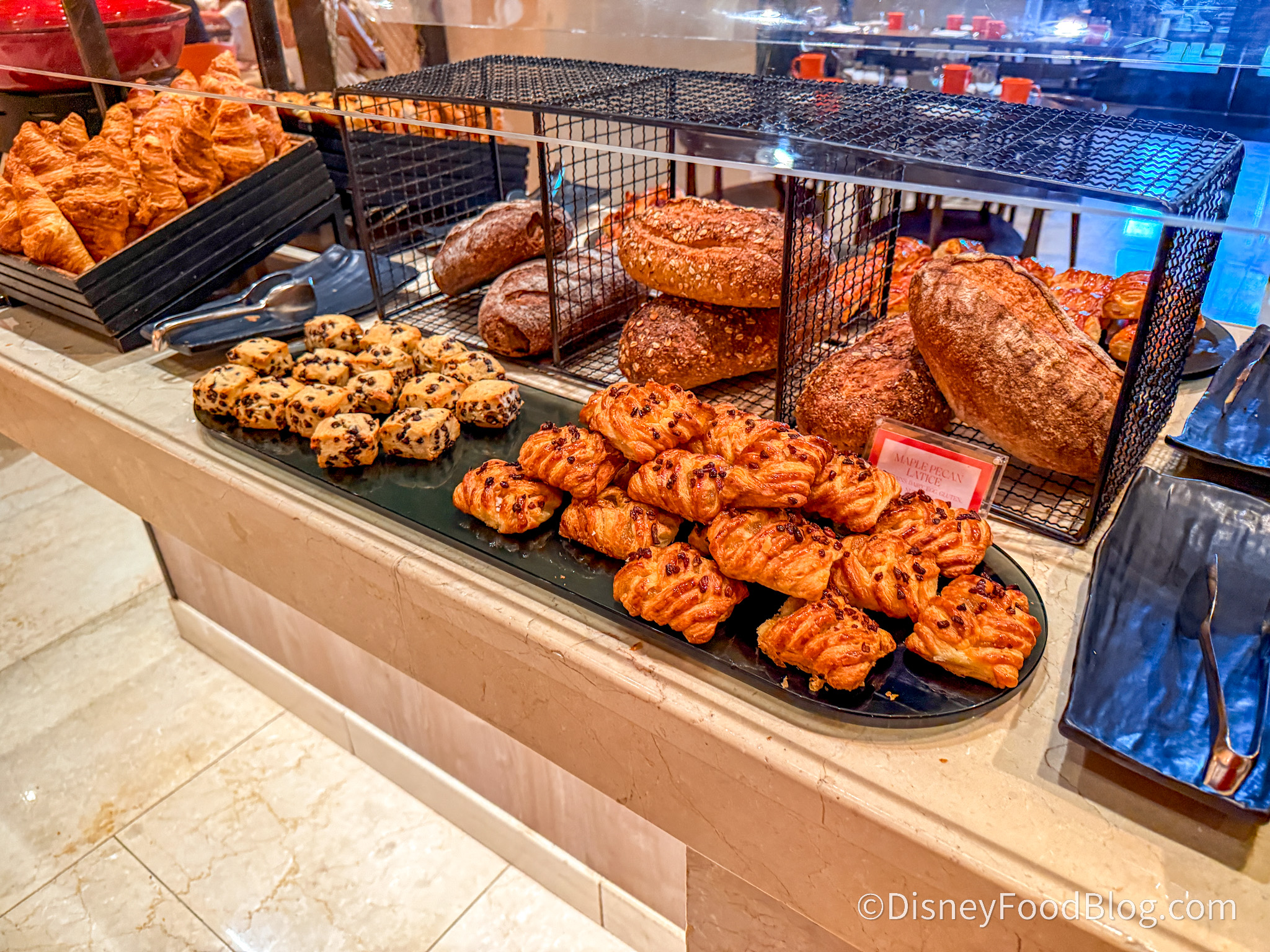 First up, we had to spring for the Breakfast Buffet, which will run you $45. This is made up of about every breakfast station you could hope for. From stations filled with fresh fruit and pastries to an avocado toast station and made-to-order omelets and so much more, there are so many options to serve the whole family. The omelet station even had a specialty omelet of the day, which was Caprese Omelet, when we visited. We saw items from salads, bacon, sausage, eggs, cereals, and pancakes, along with plenty of sauces and condiments and even fresh honeycomb.