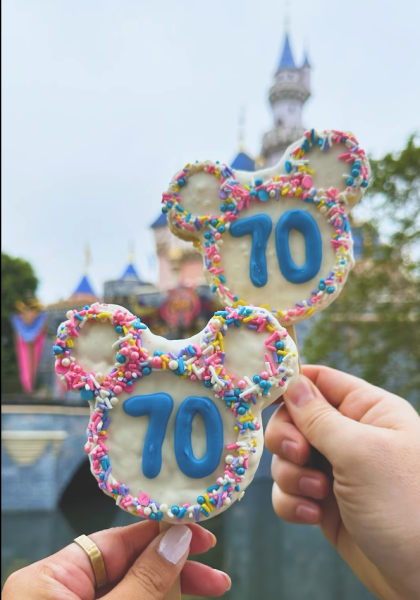But today is a little extra special because it was 70 years ago today that Disneyland opened its gates to visitors for the very first time. So please join us as we sing “Happy Birthday to you” to Disneyland all day long! If you do happen to get to Disneyland today, be sure to check out some special limited-time treats, including the 70th Celebration Mickey Cereal Treat, which is a Mickey-shaped cereal treat dipped in white chocolate, decorated with sprinkles and a blue-colored white chocolate 70…