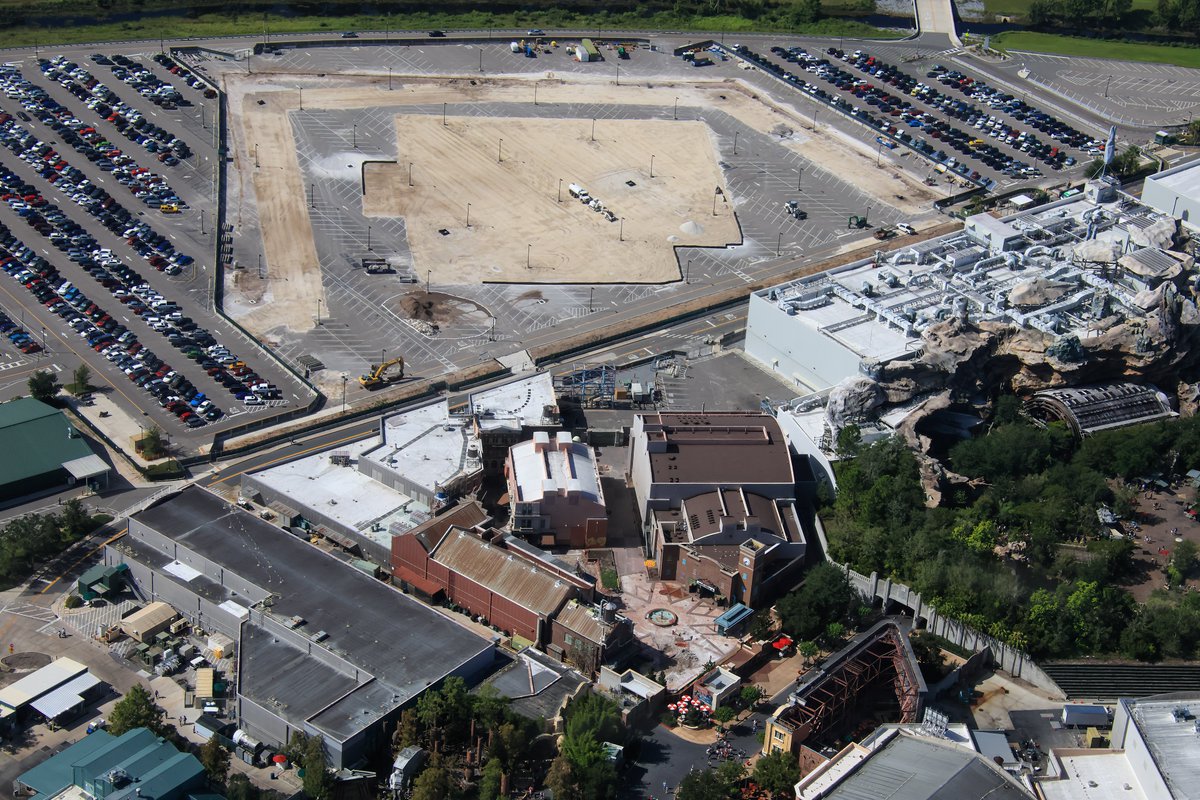 Currently, it looks like most of the construction work is going towards the hanging door roller coaster. This area used to be a Cast Member parking lot, but is being used to expand the area, and Bioreconstruct on X has been able to get pictures!