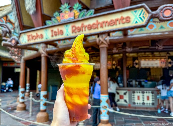 This year, the party is bringing back one specialty DOLE Whip… and that’s it! In the past, we normally saw a handful of specialty ice-cold treats pop up for the holidays in the parks, but in 2025, you can only grab the DOLE Whip Mango and Chamoy Float! It’s DOLE Whip Mango, pineapple juice, chamoy, and chili-lime seasoning.