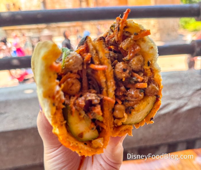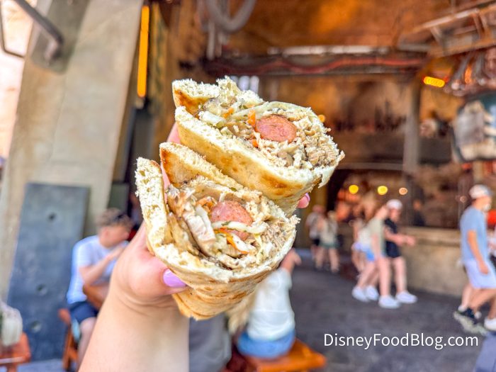 Before you grab this one, be prepared for the spice! It caught us off guard, and while some might love that, our reporter wasn’t a fan. I would say it’s more than the typical “Disney World spicy,” you might see meaning it really packed a punch rather than just adding flavor.
