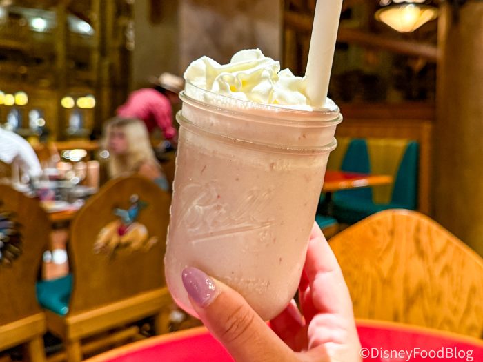 Yes — we said refillable, bottomless milkshakes while you’re enjoying your meal! Pretty neat trick, huh? And best of all, you don’t even have to be a kid to order them. We ordered the fruity strawberry and could swear we tasted fresh strawberry seeds blended up against the creamy vanilla milkshake base. It didn’t taste artificial at all to us and was one thick enough to need a wider straw to slurp it up with, but not too thick that it didn’t travel well up to your face.