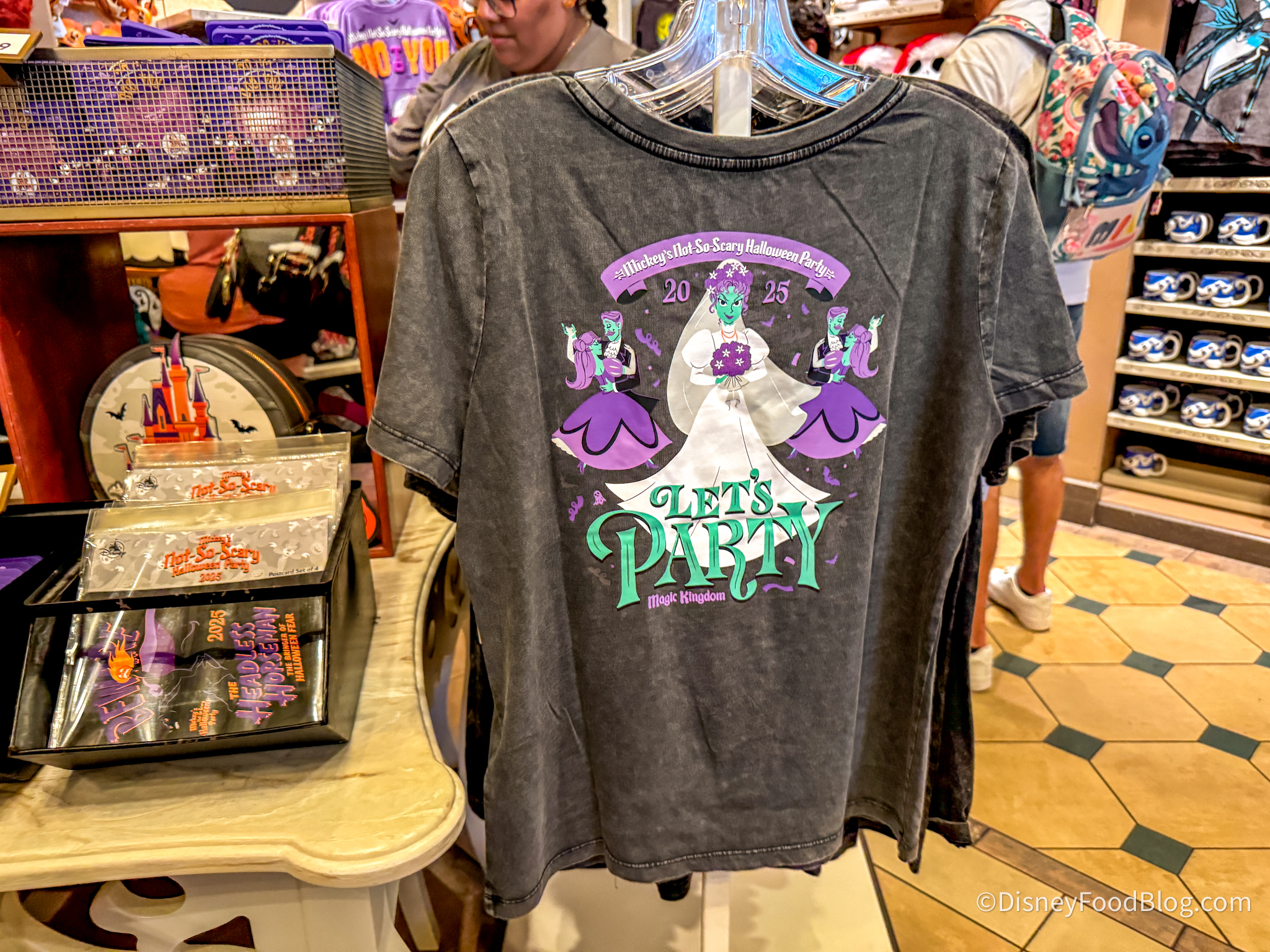 And if you’re looking for something that highlights one of the spookiest attractions, grab the Haunted Mansion Let’s Party Shirt for $34.99!