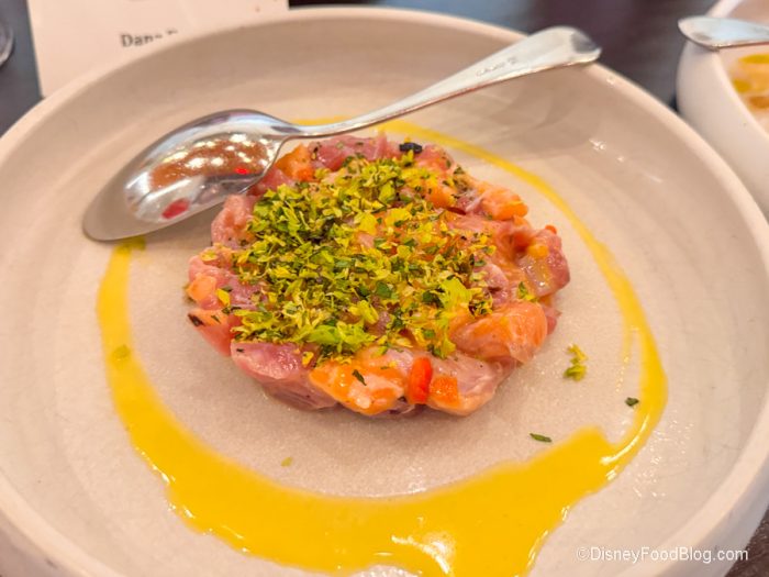 Disclosure: In nearly all circumstances, Disney Food Blog writers and photographers pay full price for their own travel, hotel, food, beverage, and event tickets. We do this because it’s important to us as journalists to ensure not only that we give you unbiased opinions, but also that you can trust us to do so since we’re paying our own way. On rare occasions, when we are invited by a company to attend a preview as media, and when we choose to accept that invitation, we will always make you, our readers, aware of that situation. We were invited by Four Seasons to attend their progressive media dinner experience. Note that when we attend events as media we are 1) Not required to review that event/food on any of our channels, and 2) Not required to review that event/food favorably. You can always count on DFB to give you a 100% unbiased and honest review of any event that we attend, food that we eat, or beverage that we drink. You can see more in our Disclosure Policy. Thank you for reading. — AJ