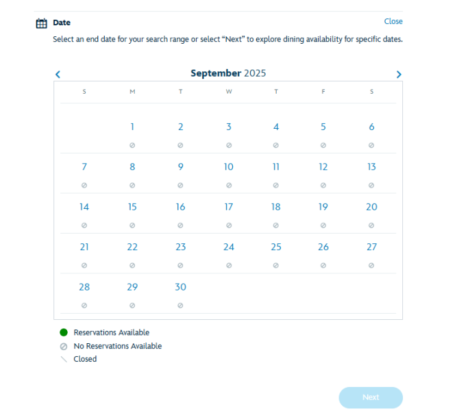 In fact, the first day that dining reservations opened to guests, on August 20th, reservations quickly booked up for September AND October. Here’s what we’re seeing.