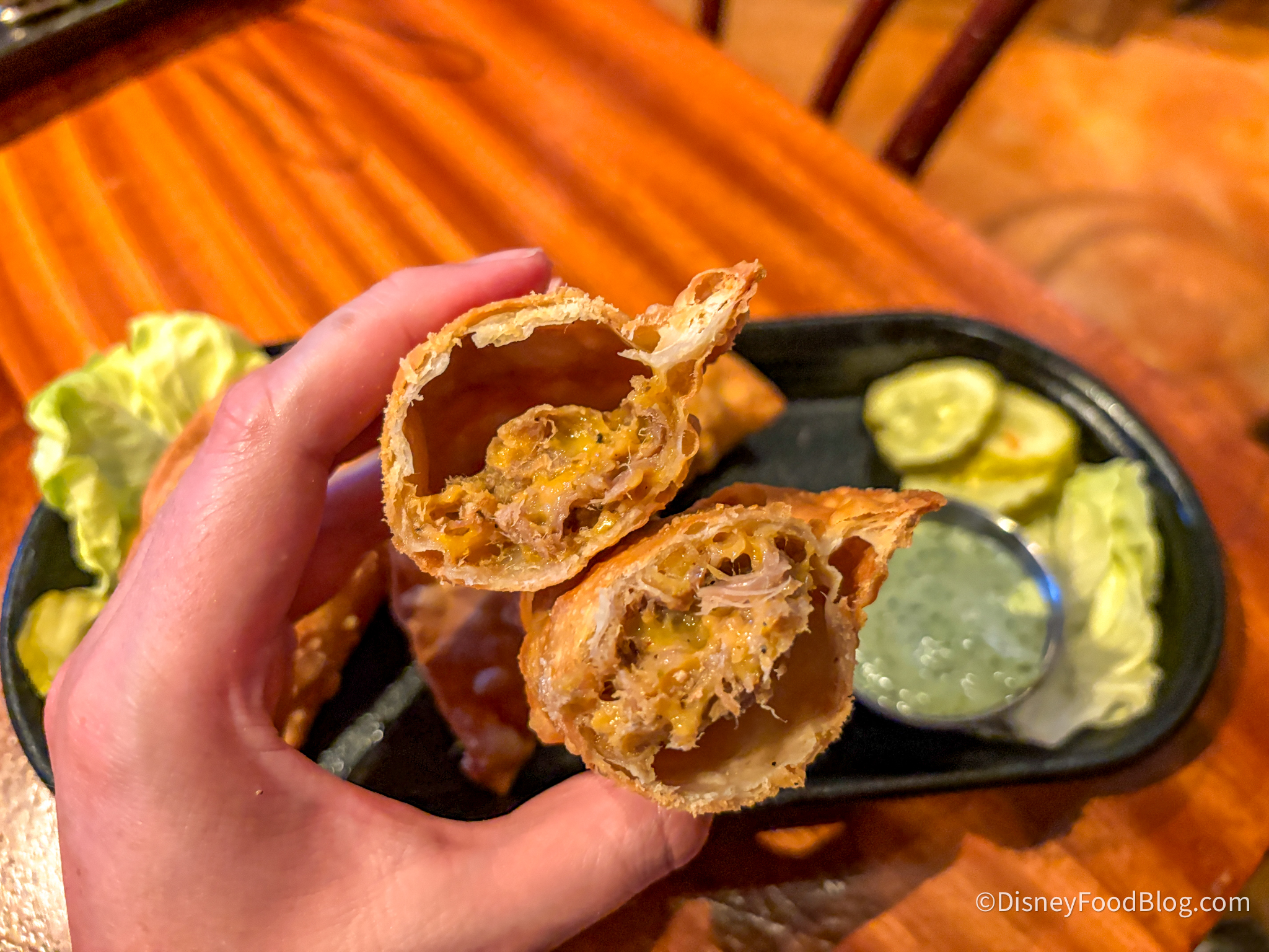 These had a beautifully buttery and flaky dough, even though it was a bit on the harder side. The aioli really added a lot of great flavor to the dish — it was herby and creamy, and went really well with the hand pies. The pork was tender, and the filling was very juicy with the cheese mixed in as well. We were impressed!