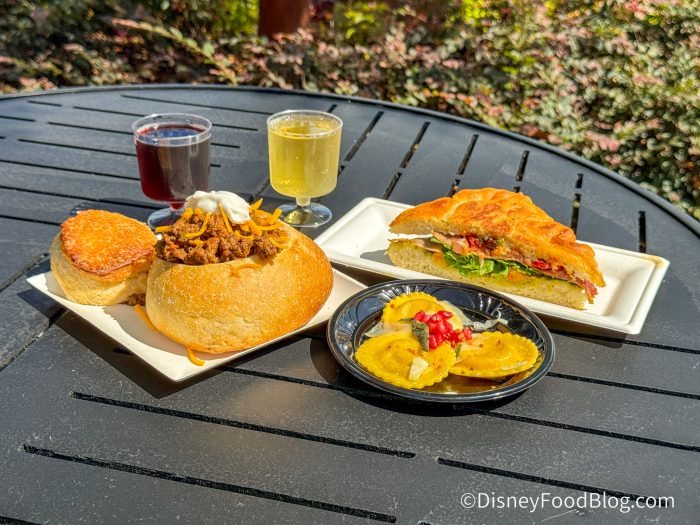 You’ll find Forest & Field between the World Showcase and the Imagination! pavilion in a new little area Disney is calling Harvest Hollow. Autumn Chili, Pumpkin Mascarpone Ravioli, and Schiacciata Sandwich with seasonal fall fruit make up the food offerings here.