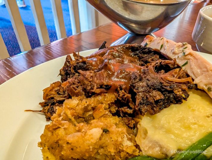 Since everything else is basically the same, we need to talk about that stuffing. You just don’t see gluten-free stuffing ANYWHERE. We thought it was so good, and it reminded us of the regular stuffing. So well done on that, Disney.