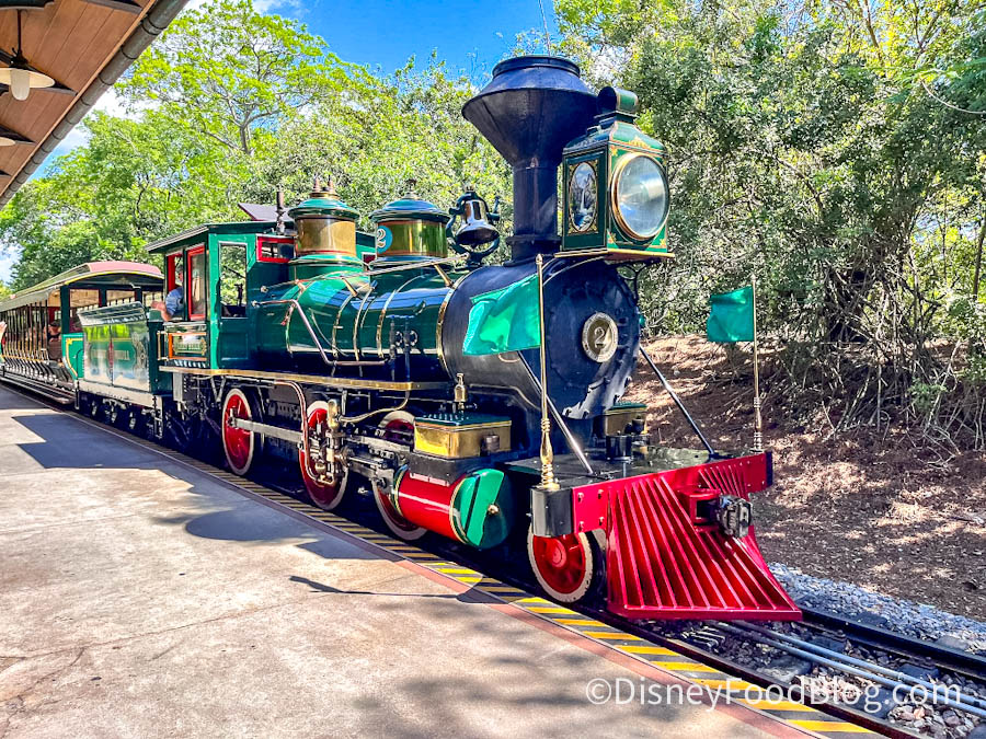 The first thing you need to know is that the Walt Disney World Railroad is experiencing a partial closure right now. While Villains Land is under construction in Magic Kingdom, the Frontierland train station is closed, as is the leg of the route that goes from Frontierland to Fantasyland. Right now, the train is running as a shuttle from Fantasyland to Main Street, U.S.A. (So when you ride to Fantasyland, you’ll get to ride backwards!)
