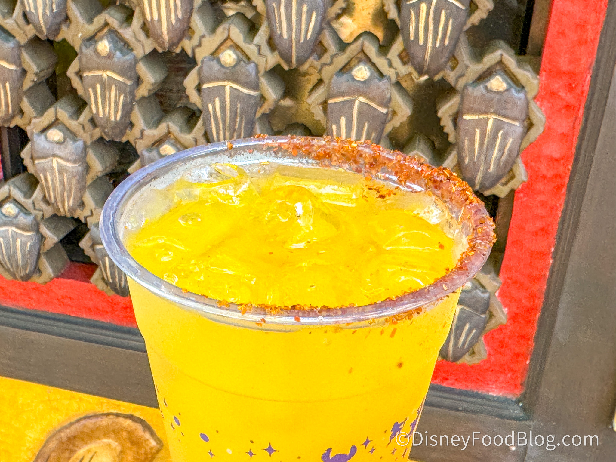 This is a fun take on our POG juice. We loved it when fixed with limeade to add a subtle tartness. The watermelon settles to the bottom and needs to be mixed in, so don’t forget to grab a straw to get the ultimate flavor adventure. Its flavor profile is incredible, with tropical fruits providing a jungle vibe and lime and watermelon offering more familiar tastes. together, it’s like a fruit punch but unique compared to others we’ve had. It’s refreshing and sweet, not overly candy-like, and grounded by real fruit juice. It tastes like a treat without being over-the-top decadent — you could still enjoy a cupcake afterward without regret. The nonalcoholic version only has the chili-lime seasoning rim on half the cup, which we preferred. While we appreciated the additional salty, spicy lime element, we also enjoyed the juice and might ask for it without the rim next time. While we didn’t try the alcoholic version, we thought it was neat that it was made with tequila instead of rum!