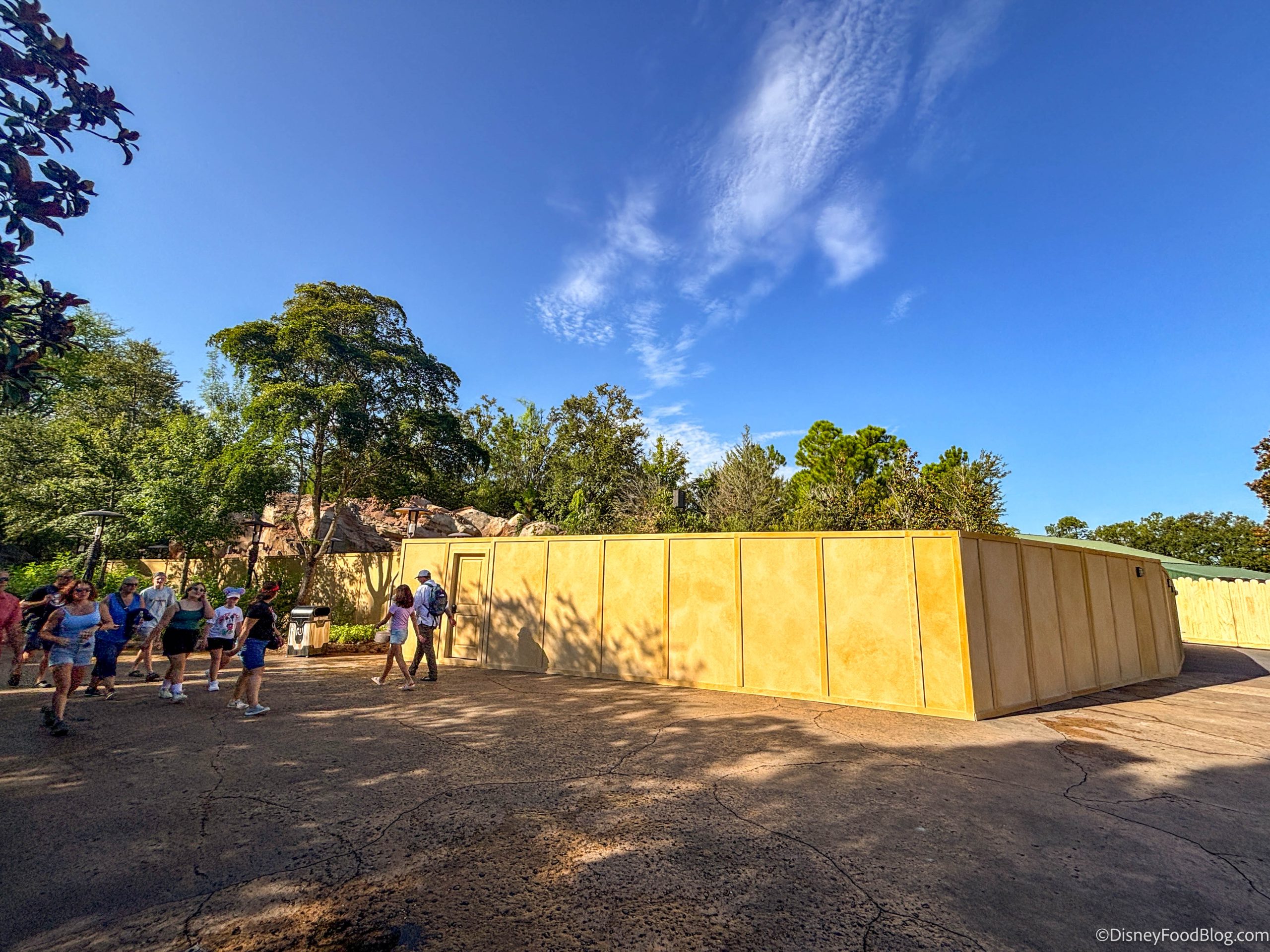 We have been keeping a close eye on this spot, curious about what would pop up. Well, now we have our first look at the new snack stand that has “popped” up over the top of the construction wall! Disney hasn’t officially confirmed that it is a new snack stand yet, but based on what we are seeing, we are pretty confident it will eventually be a snack stand.