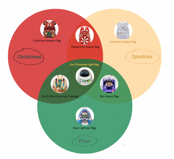 So go ahead — wear the sparkly one to EPCOT, the spooky one to Magic Kingdom, and the peppermint-themed one in July. The Loungefly Venn Diagram multiverse doesn’t judge. It just claps politely, says “same,” and asks where you got it.