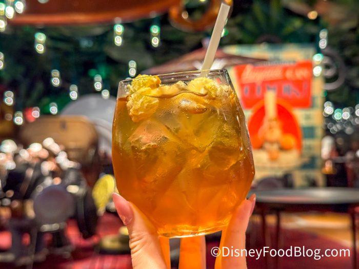 We think the most fun part of this is that it uses the Disneyland Paris special champagne. It was sweet, bubbly, and the lemon juice added a nice acidic tartness to it. The cane syrup didn’t taste like fake sugar, which we liked. We would definitely recommend this!