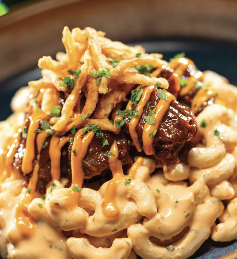 - Hickory Holiday Mac: Macaroni & cheese with burnt ends, crispy onions, and chili pepper sauce