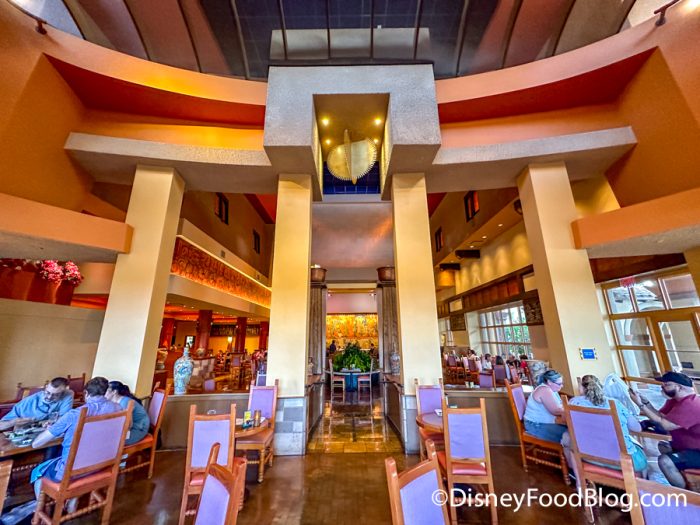 Located at the Coronado Springs Resort, this two-level restaurant features decorative Mayan motifs of fire, sun, and water, with a Tex-Mex-infused menu of traditional platters along with chef specialties. From an aesthetic standpoint, the open-air/multi-level layout is one of the most unique in any Disney hotel, and definitely adds a different feel to the dining experience.