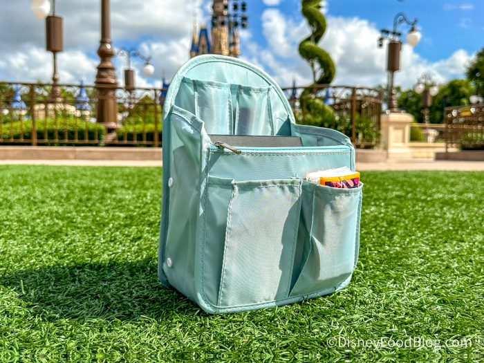 If you’ve ever struggled to find an item inside your Loungefly bag (I’ve been there far too many times), you won’t want to go into the parks without the HOYOFO Mini Backpack Organizer! All you need to do is put this organizer inside your Loungefly, and then you can organize your items much more easily. It’s come in handy for us MANY times!
