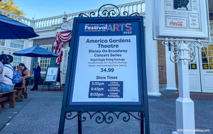 You’ll be able to enhance your evening with the Disney on Broadway Dining Packages available at 15 EPCOT restaurants. Each package includes a prix-fixe meal and guaranteed priority seating for the same-day concert performance. Reservations open as early as December 17th and can be made on Disney’s website or through your My Disney Experience app.