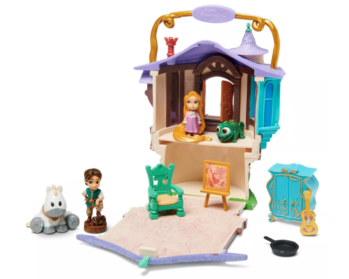This playset includes 10 pieces, including Rapunzel, Flynn, and even a frying pan! The tower carrying case opens up to become a landscape play environment. Kids can recreate their favorite scenes from the film.