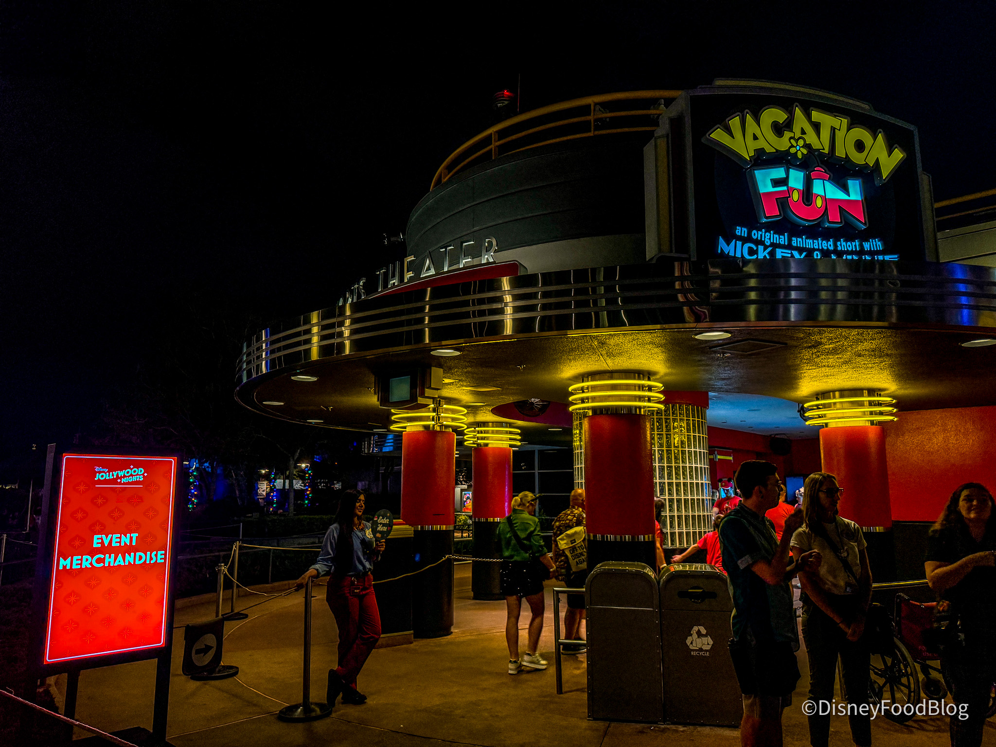 You can find the souvenirs at the Vacation Fun theater lobby area, but remember, you can only buy exclusive Jollywood Nights merchandise during your party. That means you can’t run in early to grab something, and you might not want to wait till the end of the night in case something sells out — you won’t be able to come back and buy it when it’s back in stock.