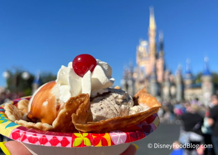 Artisan sundaes are a staple snack at Magic Kingdom. There’s probably not many better things in the world than enjoying a shareable sundae with your family on a hot day in the park. (My family loves to sit and eat a Plaza Ice Cream Parlor sundae at the very end of the night on our last day in Magic Kingdom before heading out. It’s a great way to take in the beauty of the park at night and embrace the magic.)