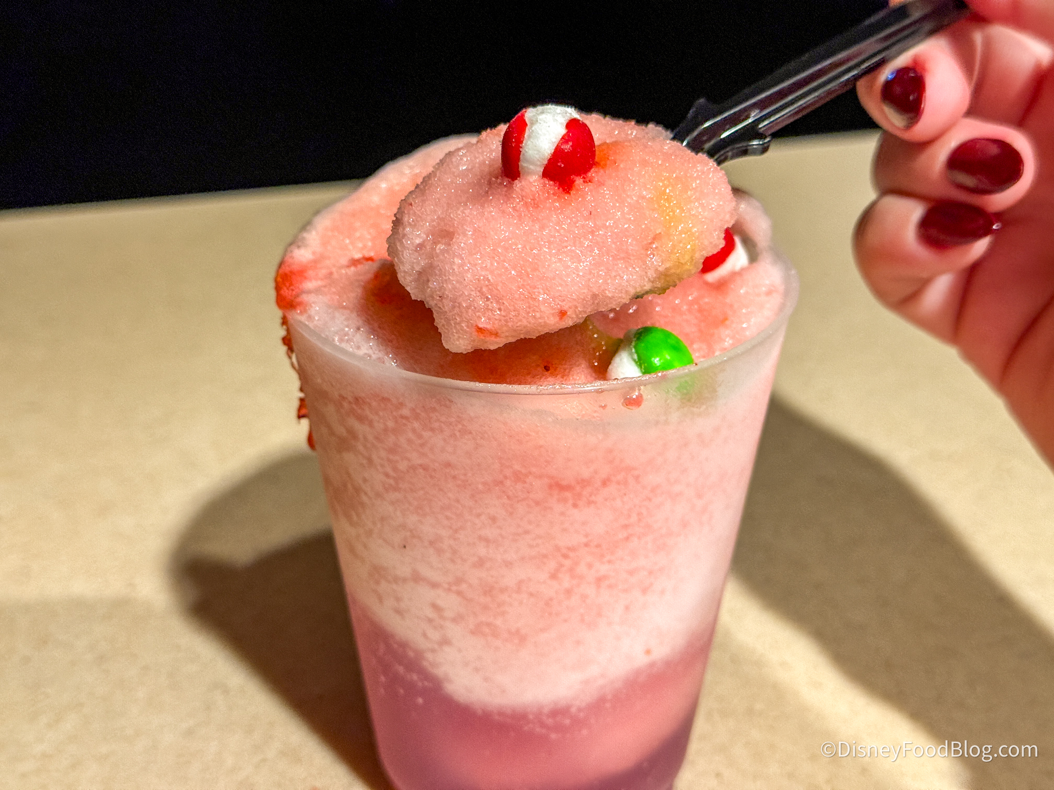 This is like a slushy-fied, hyped up version of a strawberry lemonade in the best way, and those freeze-dried Skittles really bring a fun texture into the mix. It does melt pretty quick towards the bottom, though, so be ready!