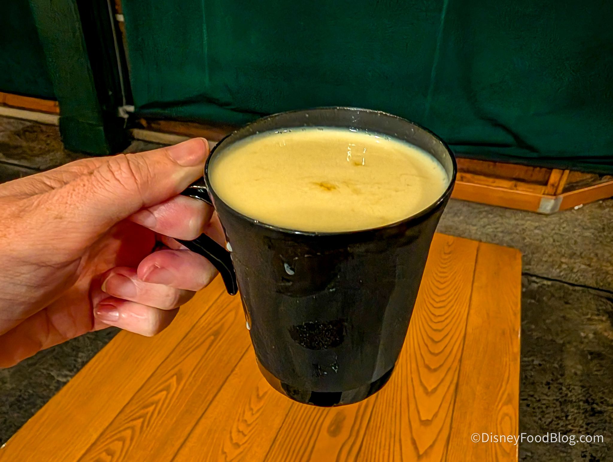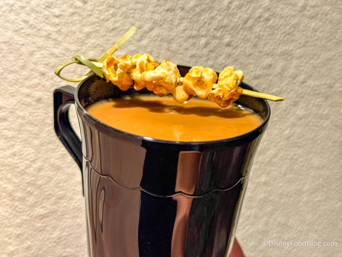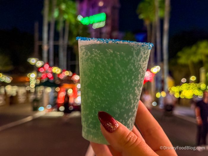 If blue raspberry were a cider, this would be it! The only difference between this one and the alcoholic version is that it comes in a different glass, and of course, there’s the addition of champagne in the alcoholic one. However, both have the zestiness of Mountain Dew, and are very much bubbly and sweet like a cider. Both versions are also the Annual Passholder exclusive drink this year, so you’ll need to have your AP and ID with you. Is it worth it? We’d say the alcoholic version is, if you’re not tired of drinks by the end of the night, but the non-alcoholic one isn’t anything special, so we don’t suggest going out of your way to grab it.