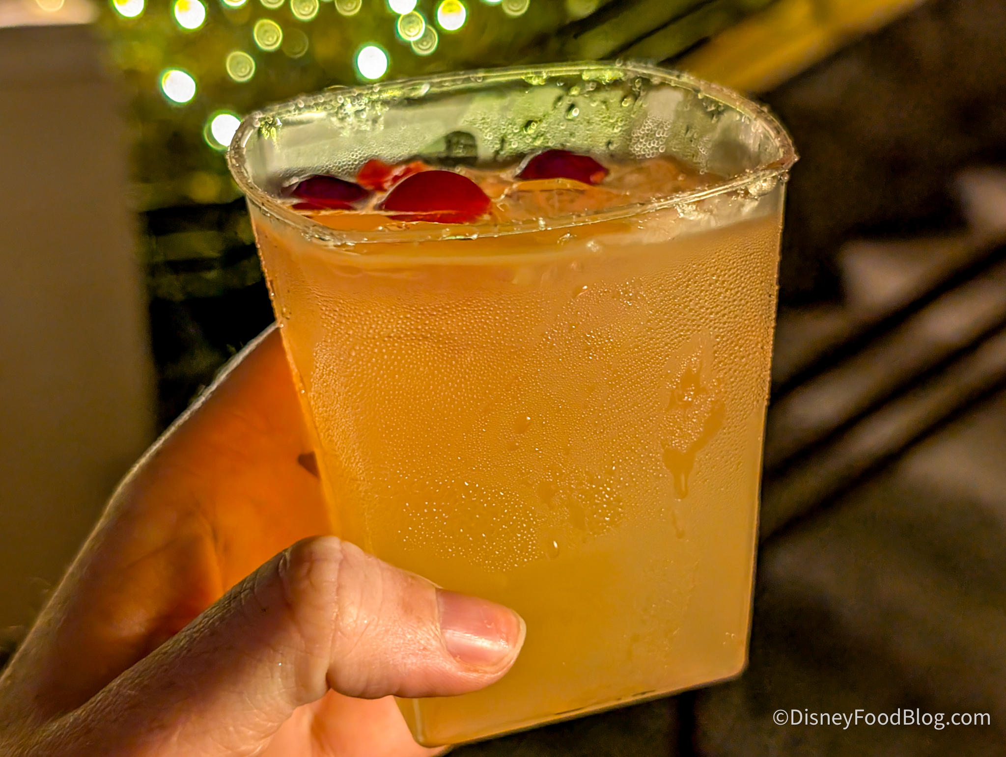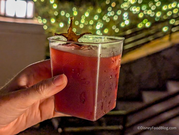 We had heard a lot of people say they really enjoyed this, but unfortunately, this was very tequila-forward rather than fruity like we were expecting, and it tasted like very CHEAP tequila. We’ll be honest here — we saw a LOT of people at the party who were giving us strong UK Pavilion-EPCOT vibes, and by that, we mean, people had had a good bit of alcohol, so it’s likely that that’s why this one was so popular. We only tasted a hint of cranberry, just mostly that cheap tequila, so unless you want a really strong drink, we suggest staying clear.