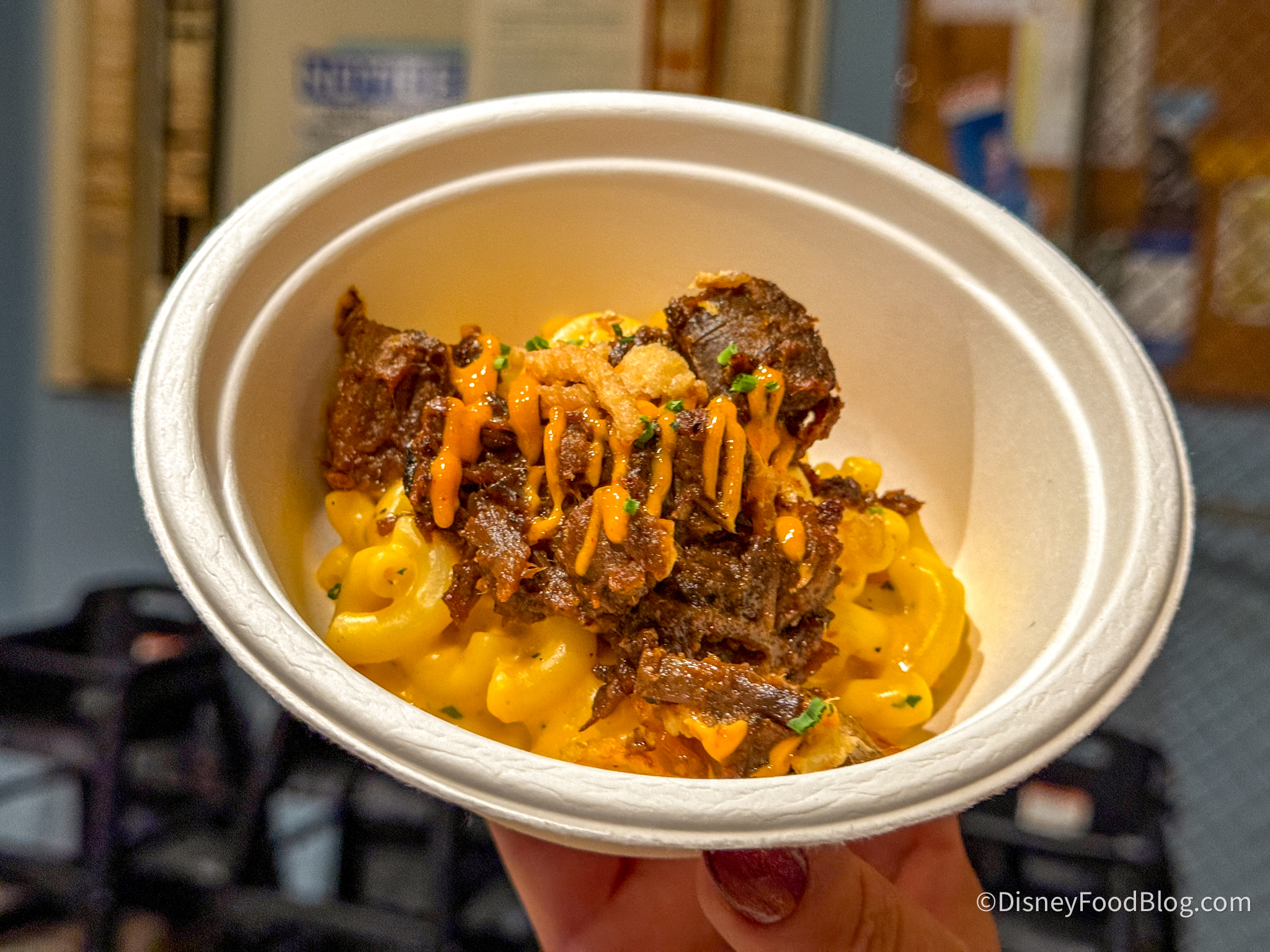 There’s a lot to experience here, starting with the Hickory Holiday Mac for $6.49, which is Macaroni & cheese with burnt ends, crispy onions, and chili pepper sauce. This one was very solid, though it does have some serious heat to it, so if you’re spice-adverse, you’ll want to stay away. The hickory flavor was slightly off-putting to us, as it was almost like barbecue, but without the sweetness. The mac and cheese itself was pretty average, nothing totally special, so part of us wished it had been baked, but it’s still a solid choice.
