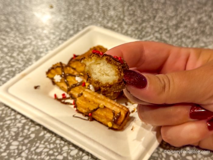 These weren’t great, but they weren’t terrible either. The churros themselves are actually a level up from the normal churros we have in Disney World, but we do think the gingerbread on top could have balanced a bit better. It plays with your taste buds a bit, but while we liked the flavor of the hazelnut spread on top, we think it would have served better as a dipping sauce.