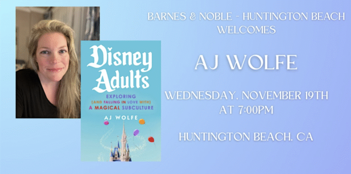 The Barnes & Noble in Huntington Beach, California, is hosting AJ Wolfe in celebration of Disney Adults! The book signing is scheduled on Wednesday, November 19th, at 7:00 PM PT.