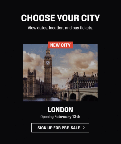 The experience will open on February 13th, 2026, but if you sign up for the pre-sale, you’ll get access to tickets on November 19th, 2025, at 10 AM WET, which is 48 hours before they open for the general public.
