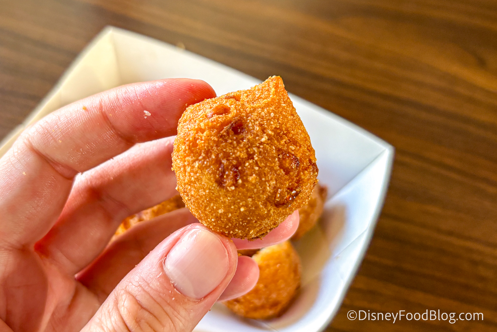 These nuggets of fried corn batter are one of our favorites, and they still taste great! They have a super-crispy exterior and a soft, fluffy interior. The inside has pieces of whole corn mixed in, which adds good texture, and you get quite a bit of the corn flavor.
