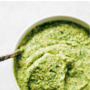 Loaded with avocados, garlic, parsley, cilantro, olive oil, jalapeño, lime juice, salt, and pistachios, it might be my favorite sauce (read: dressing, marinade, dip, spread) I’ve made ever ever ever. It’s reminiscent of guacamole just because of the avocado-cilantro-lime thing, but the parsley, the pistachios, and the olive oil keep it from being decidedly Mexican in flavor and make it compatible with, I mean, literally, everything. Salads, chicken, chips and crackers, sandwiches, dipping vegetables, you name it.