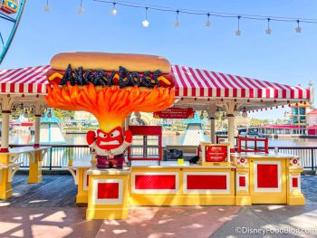 Anger from Inside Out can be spotted at this kiosk which serves up — what else? — hot dogs! But watch out — he turn ups the heat on those dogs the angrier he gets!