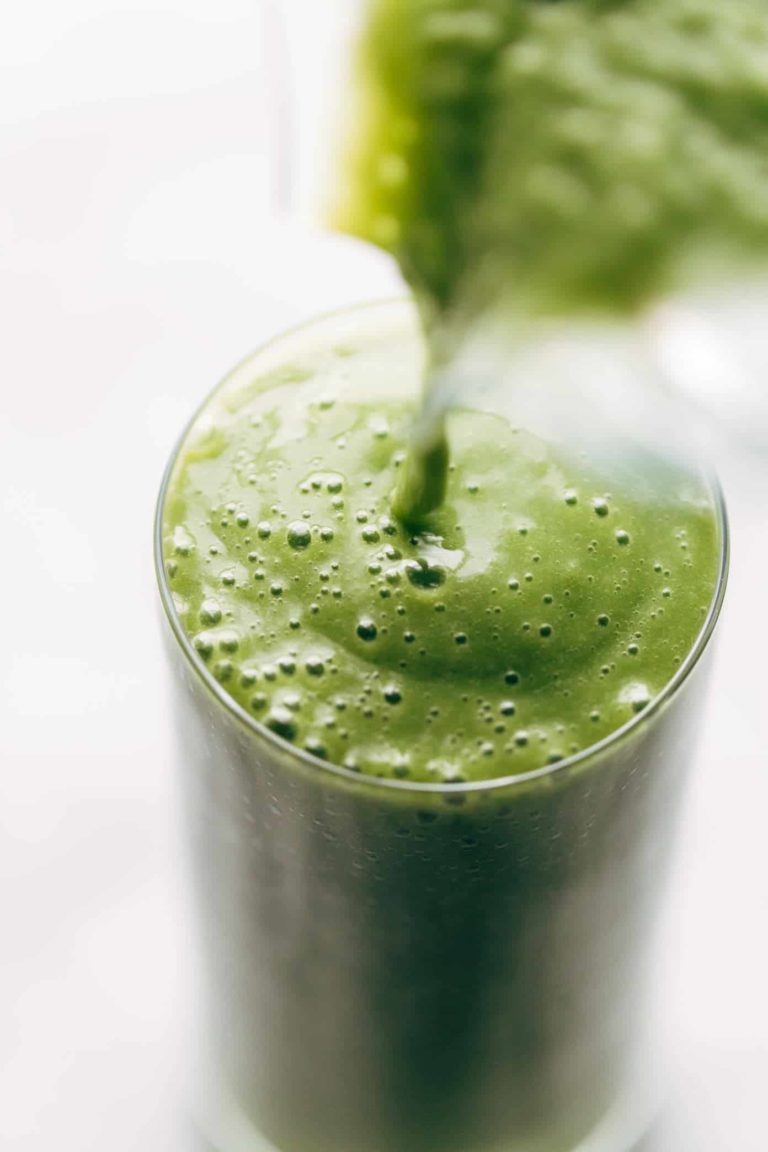The best tasting, best textured green smoothie I’ve ever had. Five ingredients – peaches, mango, kale, almond milk, and ginger.