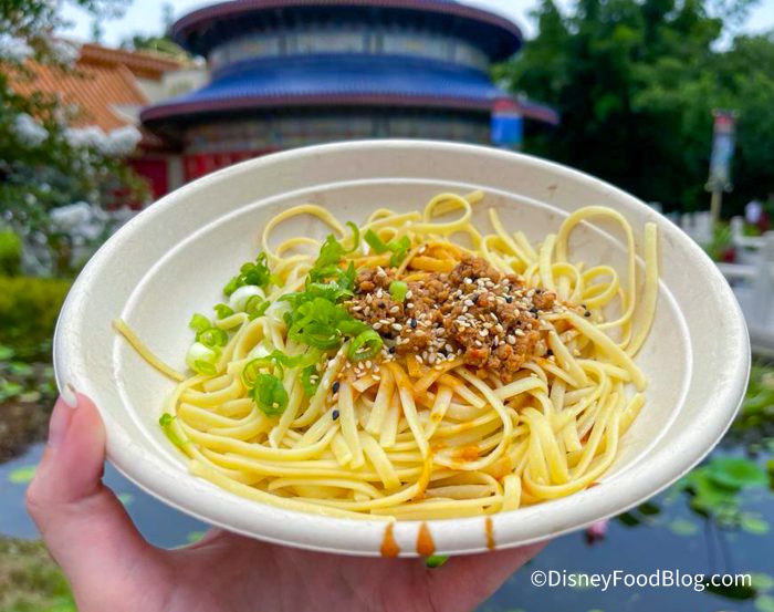- Dandan Noodles: Spicy Pork with Sichuan Sauce, Peanut Butter and Sesame — $8.25, Disney Dining Plan Snack Credit Eligible