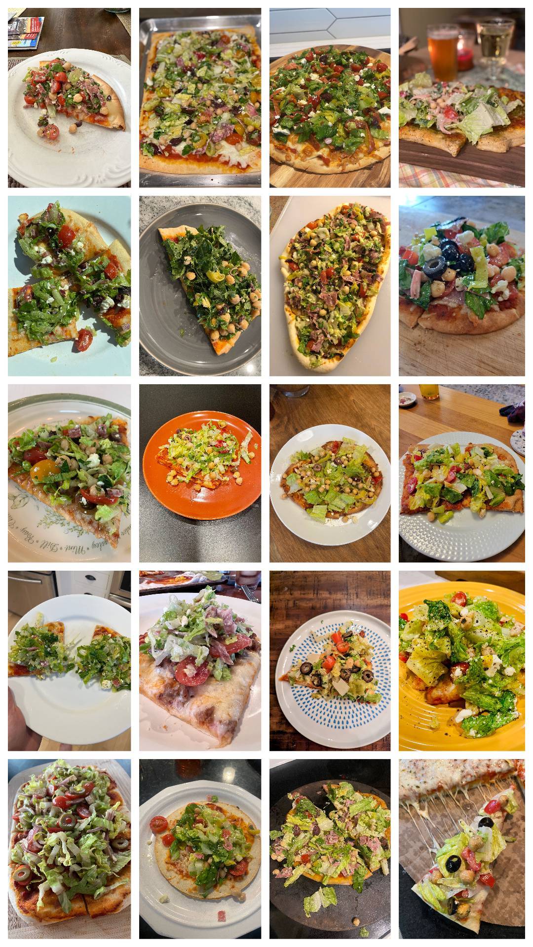 This is a great idea! My Wife makes a great homemade pizza crust and we usually make salad on the side of the pizza, why not throw it on top!