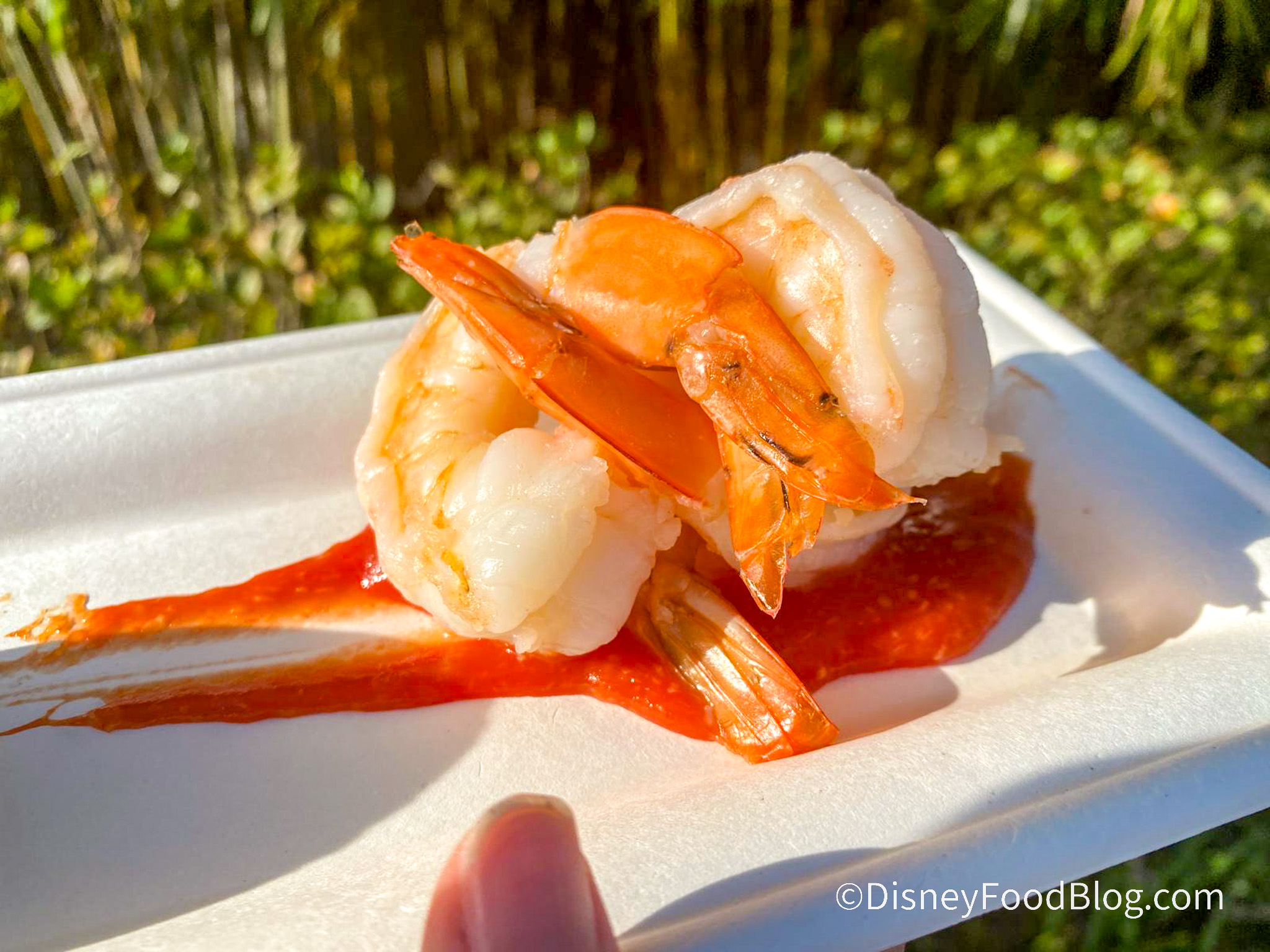 - Jumbo Shrimp Cocktail with cocktail sauce (Gluten/Wheat Friendly) – $13.00, Disney Dining Plan Snack Eligible