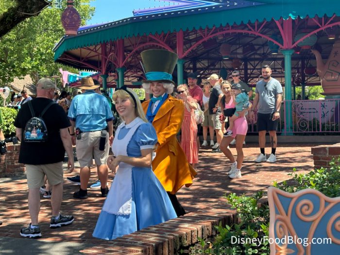 Alice sometimes visits Fantasyland (by the Mad Tea Party) all the way from Wonderland, and the Mad Hatter has popped up from time to time, as well!