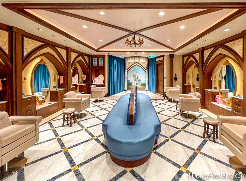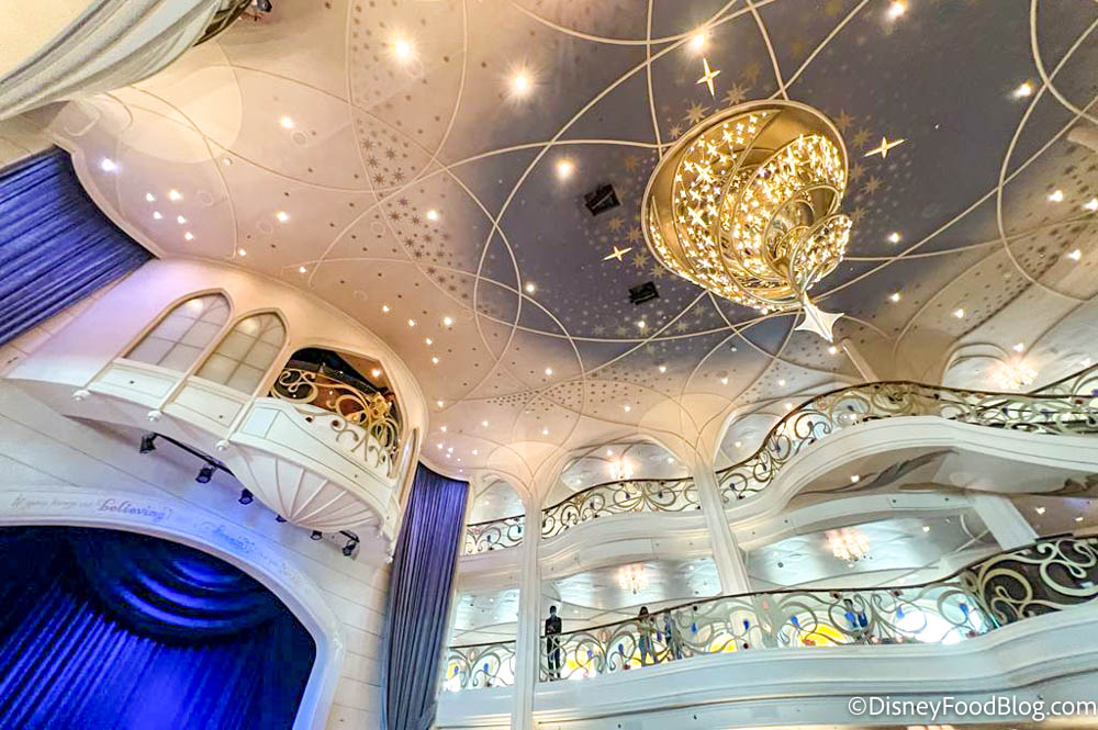 Disney says the Grand Hall is “inspired by the beauty of a fairytale castle” and makes a bold welcoming statement as guests step on board.
