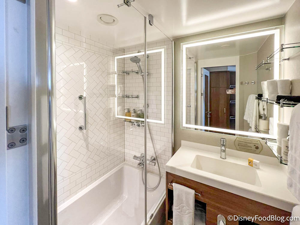 Most staterooms feature Disney Cruise Line’s split-bathroom concept.