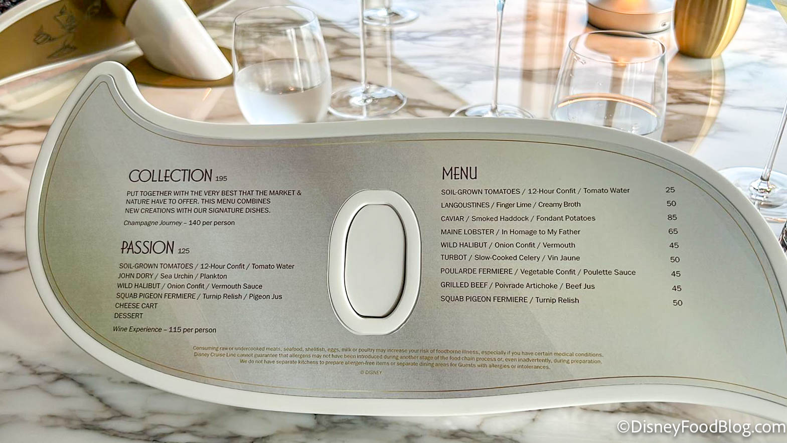 Located on Deck 3, you’ll dine in either the Walt or Roy Disney dining rooms, which present a Hollywood setting with “a dash of Disney whimsy.”