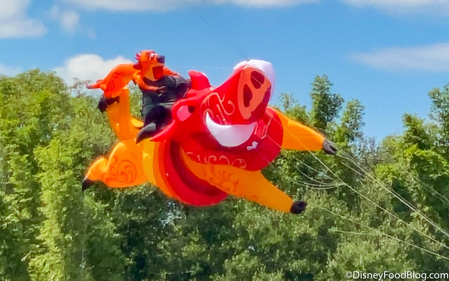 Disney KiteTails was presented frequently throughout the day in a walk-by format — meaning that, while there is seating in the Discovery River Amphitheater, it could be viewed from several spots around the Discovery River Lagoon. Guests could see shows inspired by The Jungle Book or The Lion King. Showtimes ran throughout the day (approximately every 20 minutes) from 9:10AM through 3:10PM and lasted about 5 minutes. Performances were brief, so there was plenty of time to see KiteTails twice if guests wished to catch both versions.
