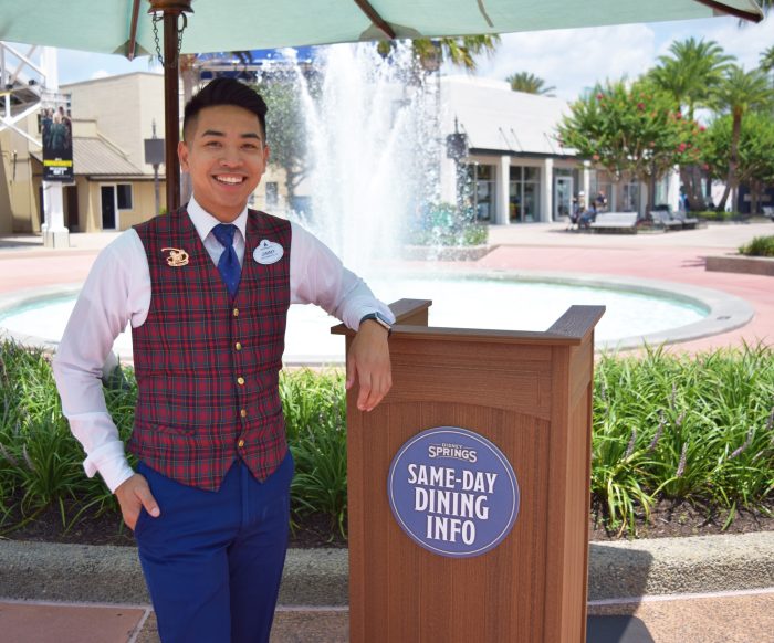 P.S. So, let’s say you’ve just arrived in Disney Springs and want to eat at one of its many table-service restaurants, but you don’t have a dining reservation. Just outside the Orange parking garage, you’ll find a Cast Member at a podium who can let you know which restaurants have same-day dining availability.